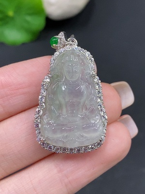 F27125242 Jadeite Guanyin Inlaid Pendant Non-Gold Inlaid Total Weight Approx. 5.7g (Matching Beads Non-Grade A)