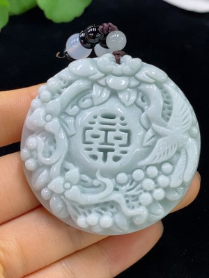 F36209976 Jadeite Flower and Bird Pendant Plaque Total Weight Approx. 71.03g (including rope weight) with non-A grade accessory stones
