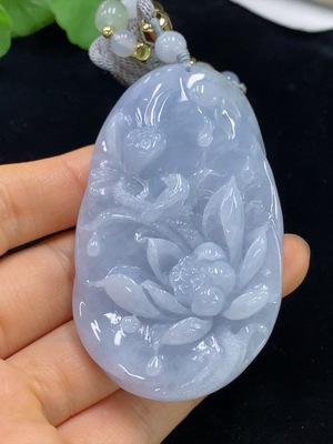 F36209975 Jadeite Lotus Pendant Total Weight Approx. 79.28g (Including Rope Weight) Non-Grade A Matching Stones