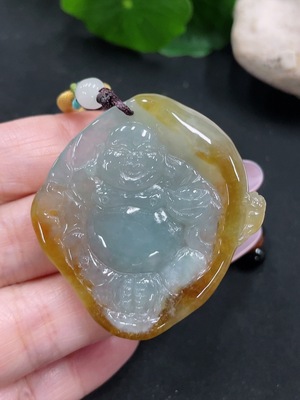 F35141995 Jadeite Buddha Pendant Total Weight Approx. 28.3g (Including Rope Weight)