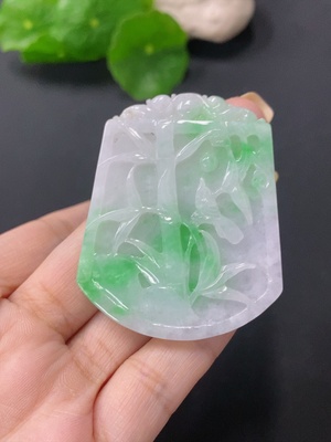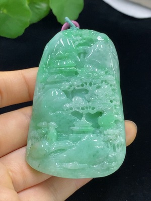 F36283563 Jadeite landscape pendant plaque with a total product weight of approximately 98.5 grams (including rope weight)