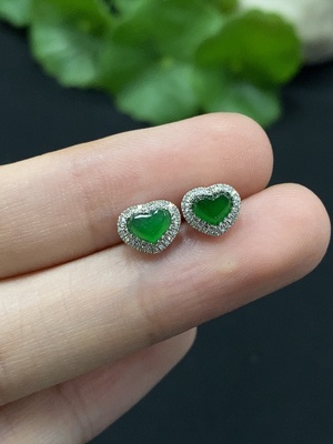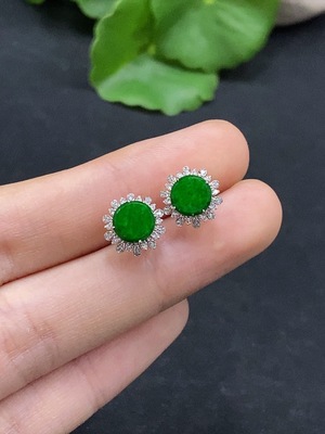 F34982519 Jadeite earrings with 18K gold setting, total weight approx. 1g (yellow part color origin undetermined)