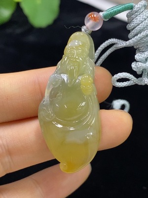 F34948971 Jadeite God of Wealth Pendant Total Weight Approx. 10.94g (Including Rope Weight) Yellow Part Color Origin Undetermined