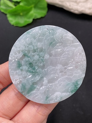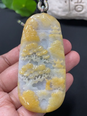 F32755620 Jadeite Landscape Pendant with Total Weight Approximately 77.2g and Undetermined Color Origin