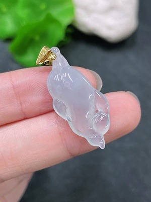 F21325899 Jadeite Gourd Pendant with 18k Gold Clasp, Total Weight 2.056g