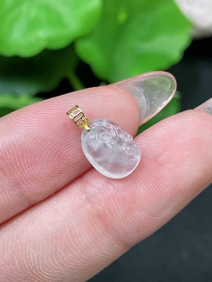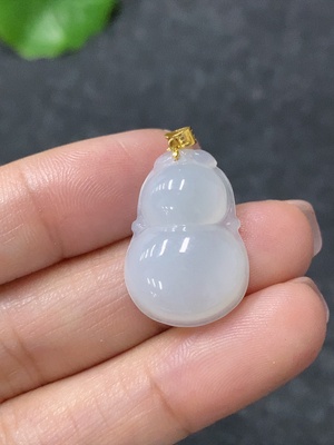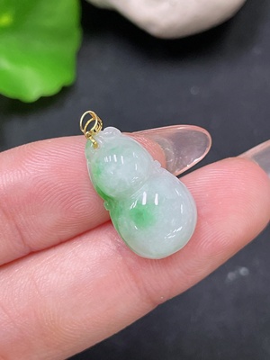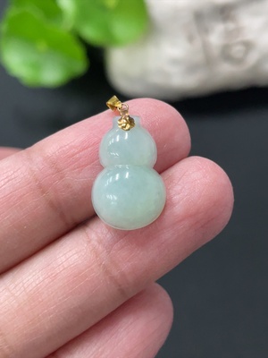 F36291554 Jadeite Gourd Pendant with 18K Gold Clasp, Total Weight Approximately 1.29g