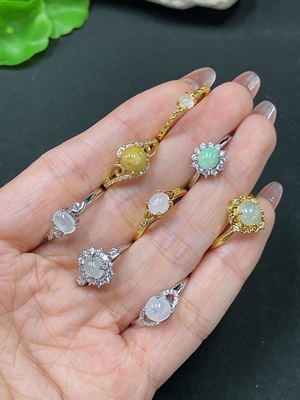 F14532586 Jadeite Cabochon Inlaid Ring (Non-Gold Setting, Adjustable Size)
