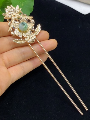 F35190082 Jadeite Bead Inlaid Hairpin Non-Gold Inlaid Approx. 10.2mm Total Weight Approx. 8.79g