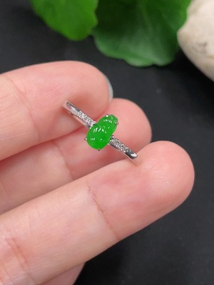 F30527628 Jadeite Inlaid Ring Size 14 18K Gold Total Weight Approx. 1.5g (With Diamond Accents)
