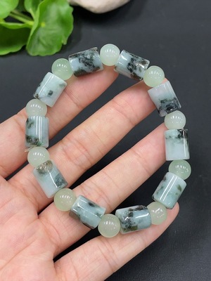F23638912 Jadeitebead bracelet approx. 8.9mm with non-grade A beads containing other mineral components total weight 27.232g
