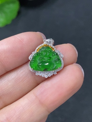 F35109238 Jadeite Buddha Pendant with 18K Gold Clasp and Diamond Accents, Total Weight Approximately 5.47g