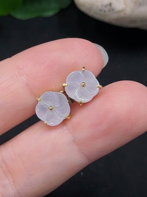 F36281942 Jadeite Inlaid Earrings One Pair No Imprint, Gold Content 18K, Total Weight Approx. 2g (Including Ear Studs)