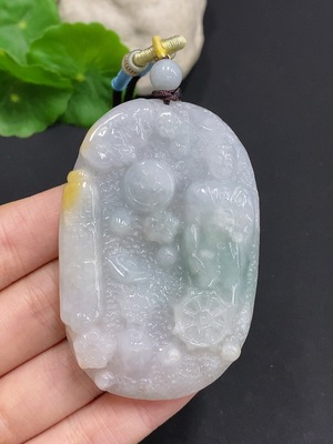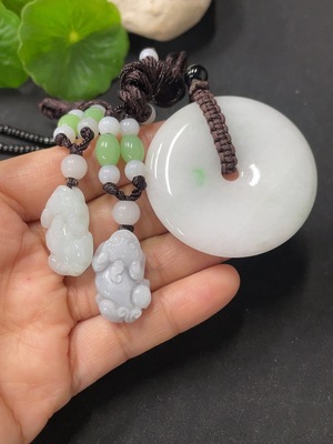 F36264925 Jadeite Pendant Total Weight Approx. 147.42g with Non-Grade A Beads