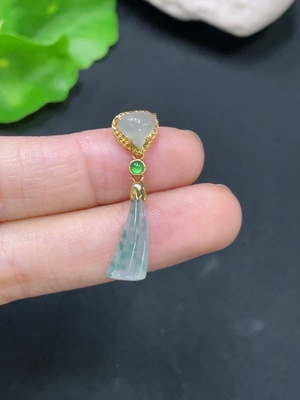 F35127175 Jadeite Fu Gua Pendant with 18K Gold Clasp, Total Weight Approximately 3.4g, Accented with Diamonds