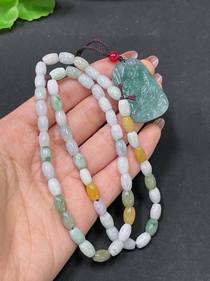 F36305809 Jadeite Pendant + Bead Chain Sell as a Lot (Beads Not Grade A)