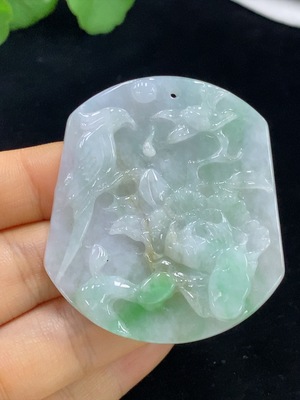 F36249865 Jadeite Flower and Bird Pendant, Total Weight Approximately 26.6g