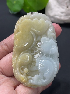 F24811972 Jadeite Auspicious Yearly Abundance Pendant with total weight approx. 58.5g (non-A configuration)