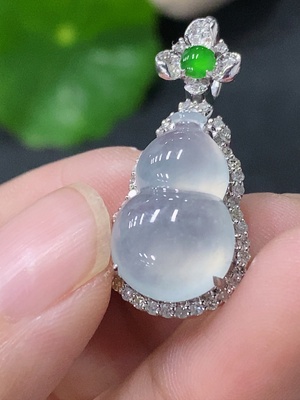 F33943126 Jadeite Inlaid Gourd Pendant 18k with Diamond Accent Total Weight Approx. 3.75g
