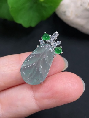F36282427 Jadeite leaf inlaid pendant non-gold inlaid total weight approx. 2.6g (accompanying beads non-A)