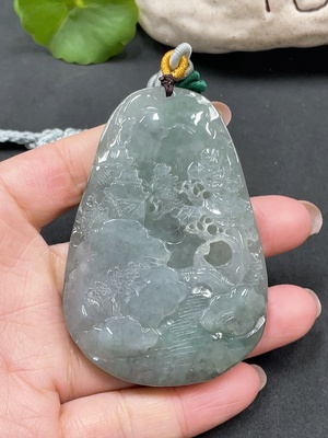 F19090220 Jadeite Landscape Pendant with Non-A Grade Beads, Total Weight 61.799g