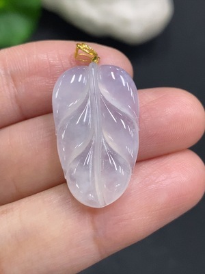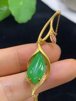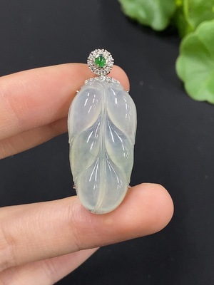 F36245776 Jadeite Leaf Pendant with 18K Gold and Diamond Accents, Total Weight Approximately 1.92g