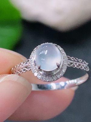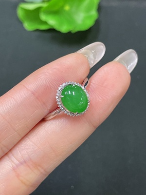 F34976304 Jadeite Cabochon Inlaid Ring 18K Gold Size 13 Total Weight Approx.1.1g (With Diamond Accents)