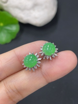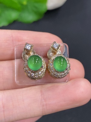 F37425142 Jadeite Inlaid Earrings 18k Total Weight Approx. 2.78g with Diamond Accents
