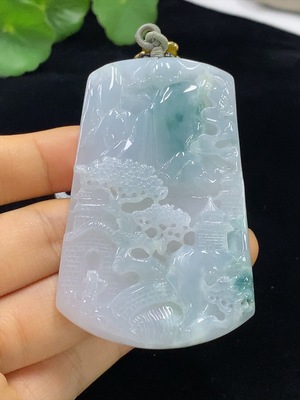 F34975213 Jadeite Landscape Pendant with a total weight of approximately 59.7 grams (including rope weight)