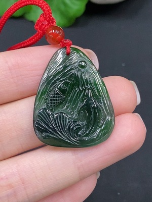 F26966284 Jadeite Auspicious Fish Pendant Total Weight Approx. 7.2g (Including Rope)
