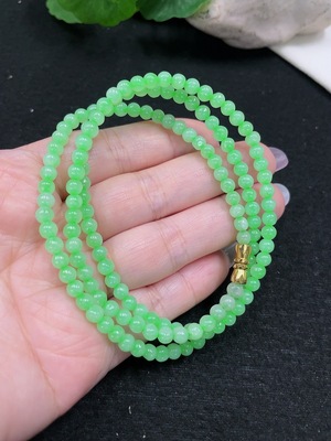 F33917822 Jadeite Beaded Necklace Approx. 4.2mm Beads Total Weight Approx. 19.2g (Non-Gold-Inlaid) (Cord Affects Color)