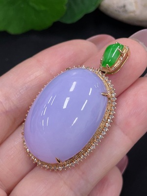 F37391957 Jadeite cabochon pendant in 18K gold, total weight approximately 19.3g (accented with diamonds)