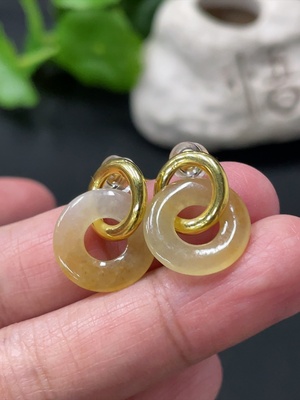 F37348021 Jadeite Donut Stud Earrings Pair 18k Gold Inlaid Total Weight Approx. 3.47g