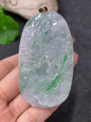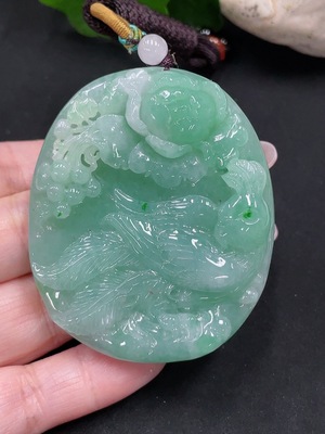 F34974571 Jadeite Landscape Pendant Total Weight Approximately 43.67g (Including Rope Weight)