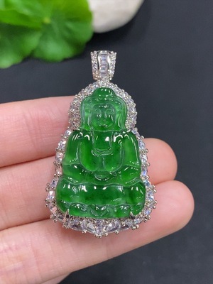 F37357282 Jadeite Guanyin Pendant Non-Gold Inlaid Total Weight Approximately 15.5g