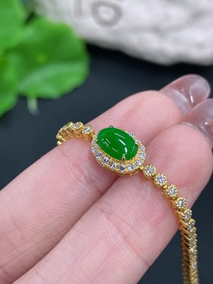 F37421147 Jadeite Cabochon Inlaid Bracelet 18k with Diamond Accents Total Weight Approx. 7.66g