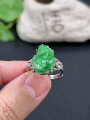 F38477293 Jadeite Three-Legged Toad Inlaid Ring Non-Gold Inlaid Adjustable Size Total Weight About 3g