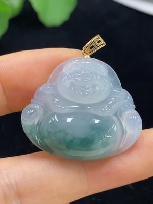 F35178312 Jadeite Pendant Buddha with 18k Clasp, Total Weight Approximately 6.4g