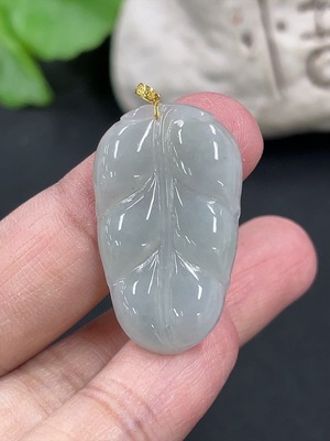 F29337793 Jadeite Leaf Pendant with 18K Gold Clasp, Total Weight Approximately 1.4g