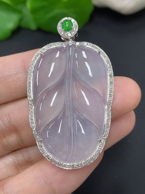 F37380583 Jadeite Leaf Pendant with 18k Gold and Diamond Accents, Total Weight Approximately 13.98g