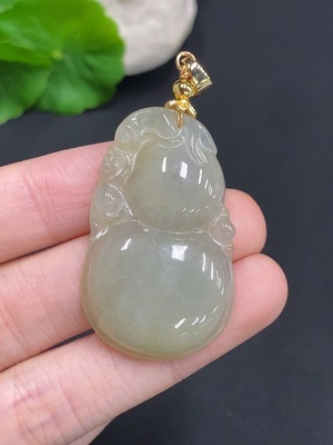 F35125490 Jadeite Gourd Pendant Non-Gold Inlaid Total Weight Approximately 12.2g