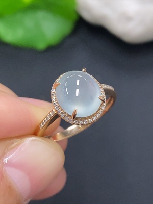 F37468327 Jadeite Cabochon Ring in 18K Gold Size 15 Total Weight Approx. 2.4g (with Diamond Accents)