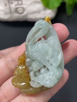 F30548039 Jadeite Phoenix and Peony Pendant with a total weight of approximately 96.2 grams (Color origin undetermined)