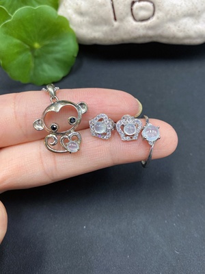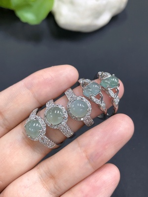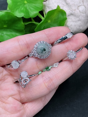 F11158097 Jadeite Inlay Ring Set (Adjustable Hoop, Non-Gold Setting)