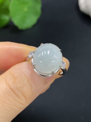 F34957970 Jadeite Cabochon Ring + Cabochon Non-Gold Setting Ring with Adjustable Size