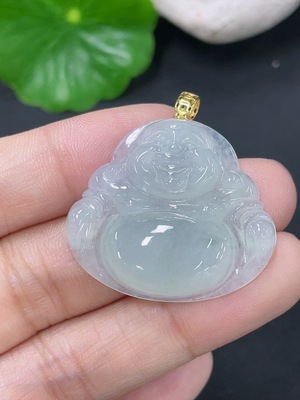 F38509428 Jadeite Buddha Pendant with 18k Gold Clasp, Total Weight Approximately 6.3g