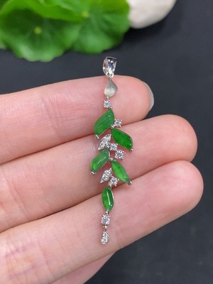 F29435940 Jadeite Leaf Inlaid Pendant 18k Total Weight Approx. 0.48g