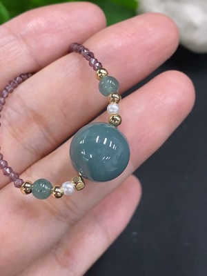 F11181758 Jadeite Pendant + Bead Bracelet Set, Approx. 16mm
