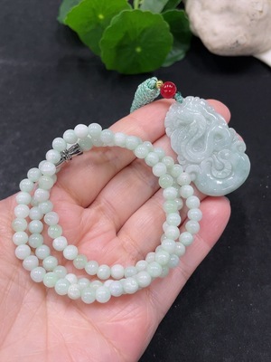 F36222729 Jadeite Pendant + Bead Necklace Sell as a Lot (Non-Gold Inlaid)