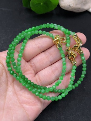 F36222085 Jadeite Bead Necklace Approx. 3.8mm Total Weight 21.4g (Non-gold Inlaid)