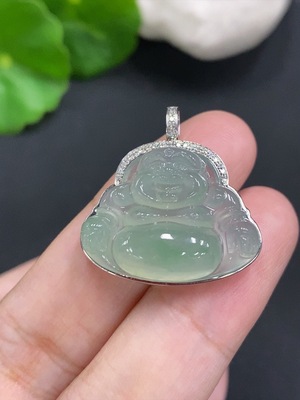 F21314799 Jadeite Buddha Pendant with 18K Gold Setting, Total Weight Approx. 5.8g